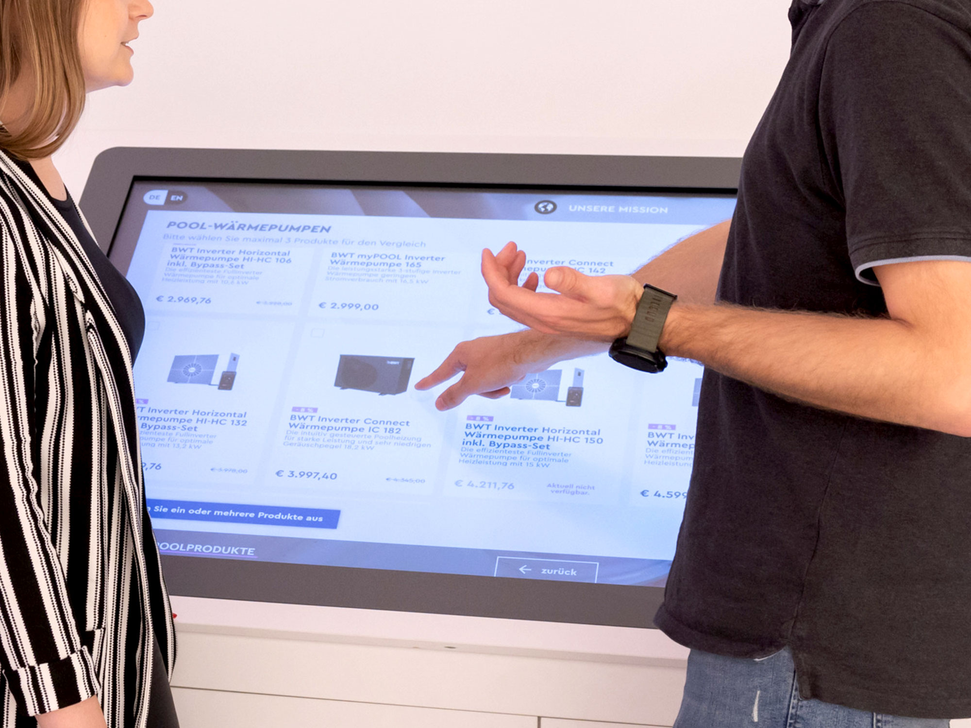 Different digital touchpoints in the BWT Best Water Shop in Mondsee